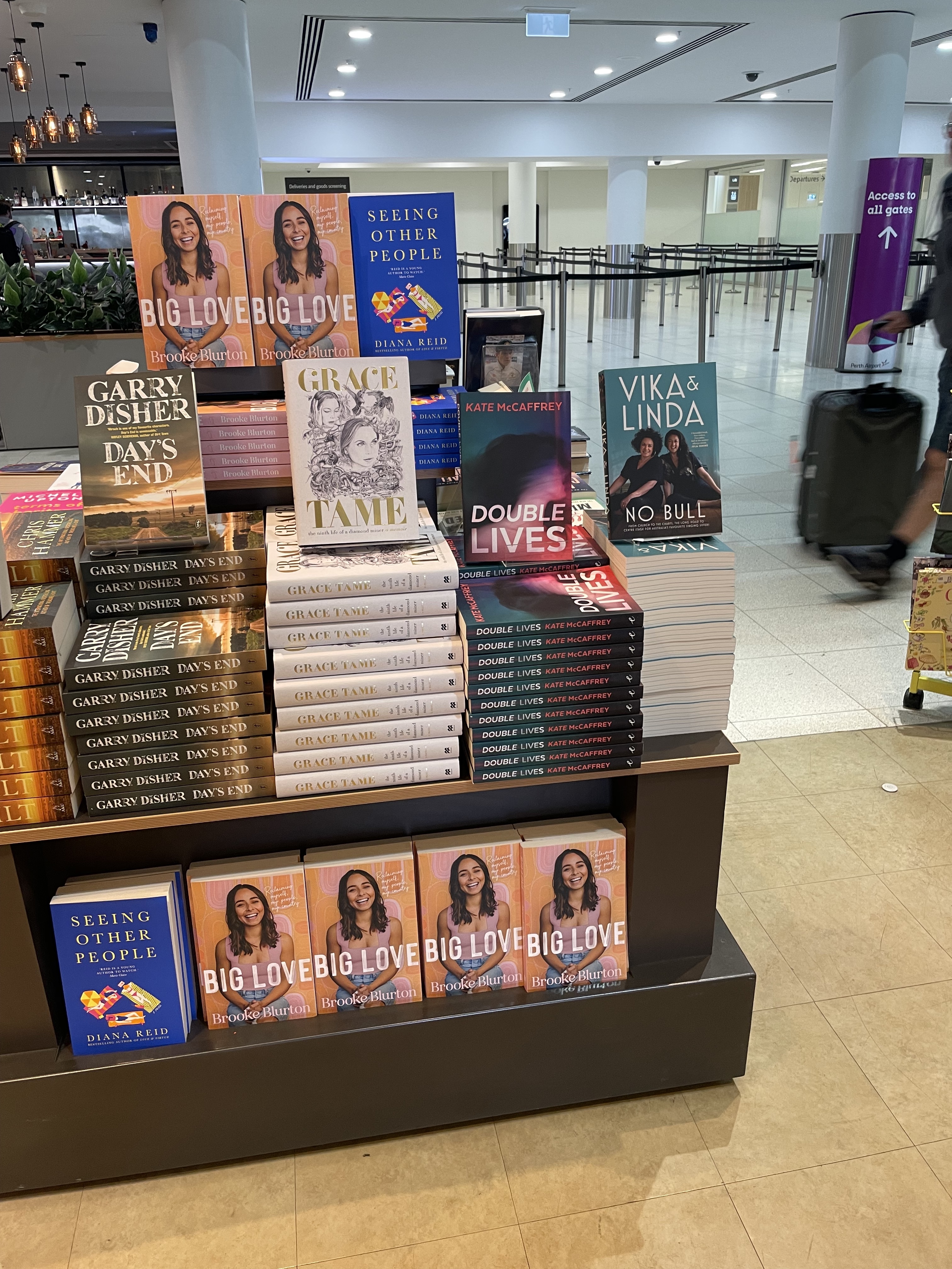 Double Lives rubbing shoulders with Wilbur Smith and Lisa Barr at Perth airport on the way to Sydney.